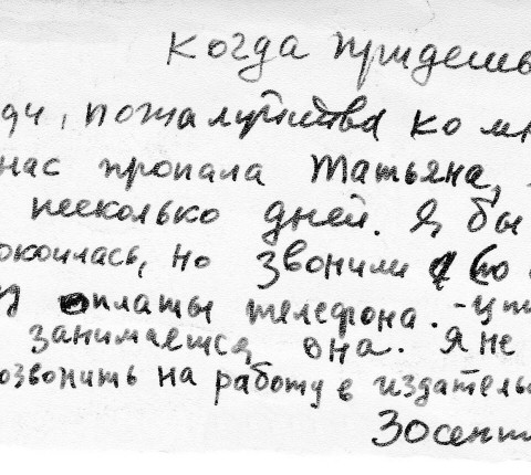 What: The person who wrote this note is well informed about her neighbor's comings and goings; however, she makes it clear that this is not out of curiosity or a fondness for gossip, but is motivated by practical necessity. She is not worried about the fact that her neighbor has gone missing; she is concerned that the telephone may be disconnected.