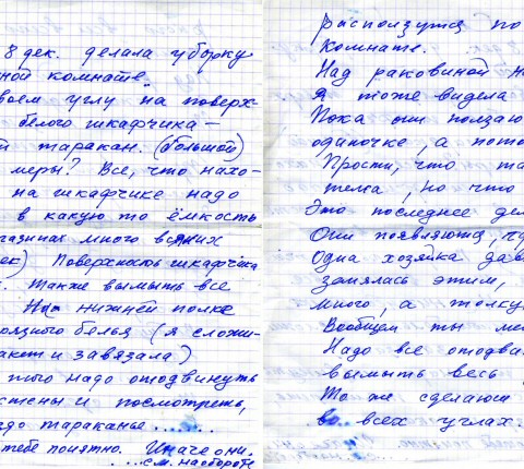 will be crawling all over the bathroom. On the shelf over the sink I also saw some cockroaches. For now there are just a few here and there, but soon...! Sorry to bring up such a subject, but what else can I do. This is the last straw... cockroaches. They show up when it's dirty. If there were just one person living in this apartment, she would have taken care of this, but because there are several of us, nothing gets done... Well anyway, you get what I'm saying. You have to move everything out of the way and clean the whole corner.... Everybody else will do this in the other corners.